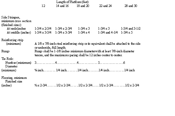 Table 10-16. Minimum design criteria for wooden bracket form scaffolds.