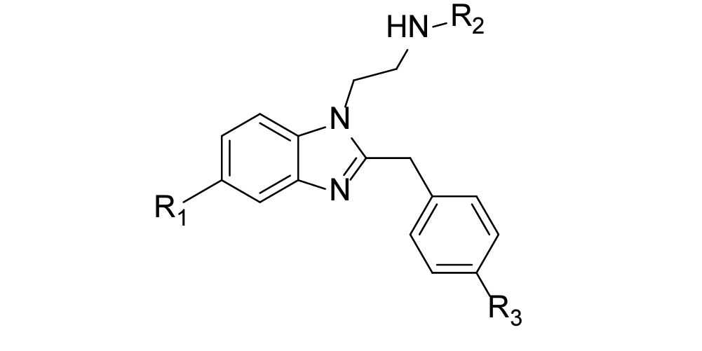(a) A chemical scaffold consisting of substituted or non-substituted ring structures that facilitate binding of required elements (such as: indole compounds, indazoles, benzimidazoles or other ring types);